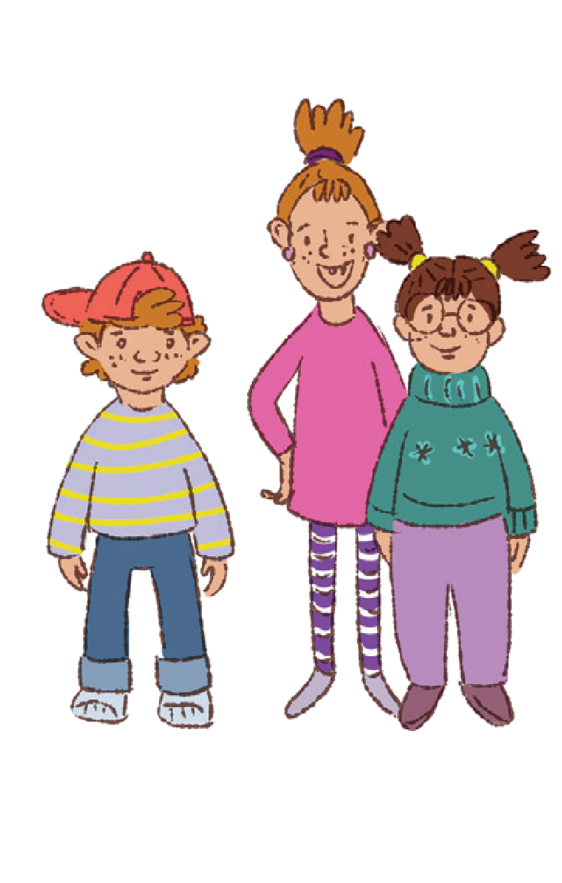 The kids have unique personalities but usually do things together. Caleb enjoys showing off. Madison and Brittany are phone-obsessed. They are always on social media and doing things only to have them captured on camera and posted to tiktok. They live online and will often huddle around the one phone they share, as if it was a campfire keeping them alive. They are sometimes oblivious to anything going on around them in the real world. They admire internet memes like “planking,” or death defying dares.