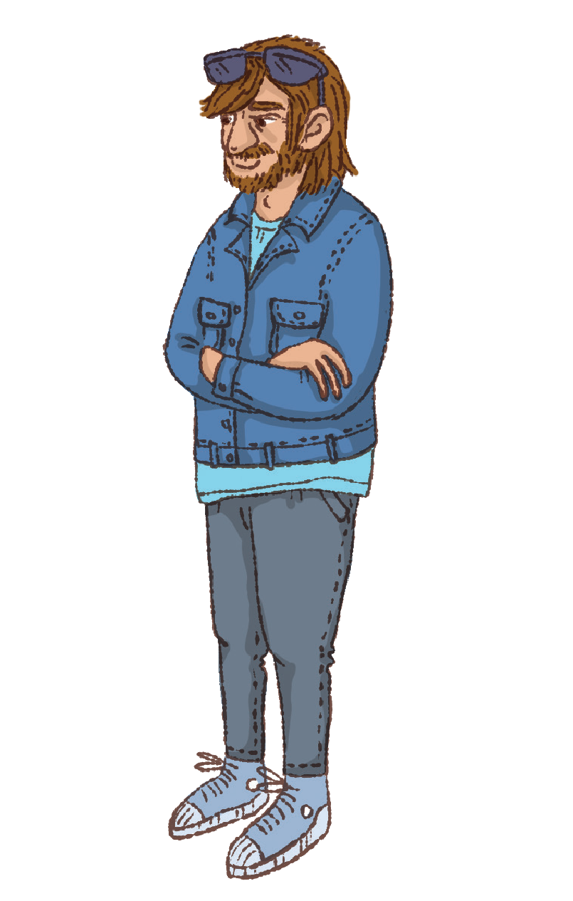 Fred is an unemployed father doing double duty as primary caregiver to his and Dawn's three awesome children. Sometimes a little paranoid from smoking pot. Sometimes aloof. Often unaware of his surroundings. Fred used to work as a programmer of bank software. He was really good at it and enjoyed the work. When he was laid off, Fred wanted to take a break from programming but then never really got started again. His wife pressured him to go back to work but his efforts backfired as he ended up insulting his friends– professionals, lawyers and other programmers. They don’t talk so much any more.